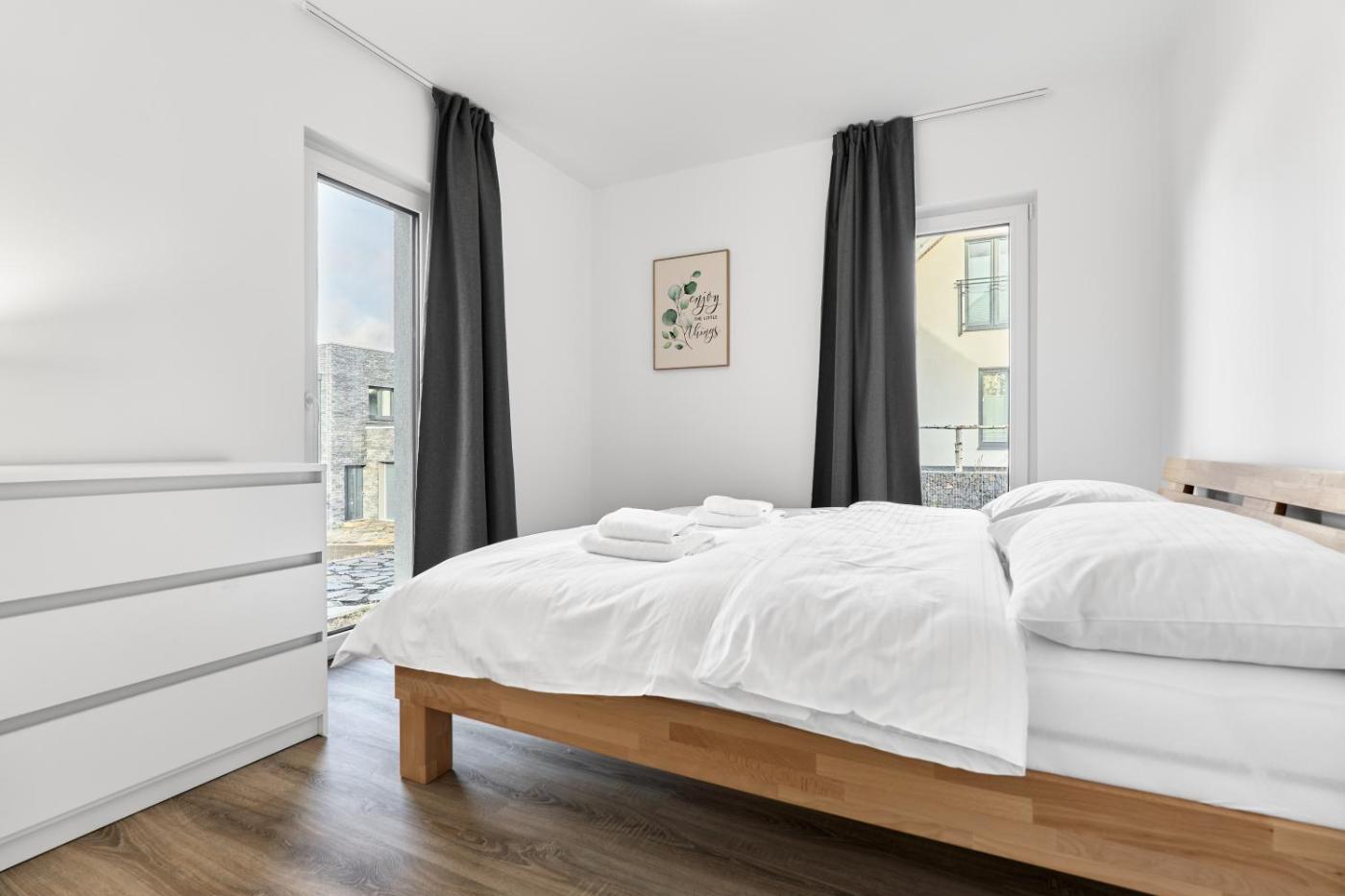 Two-Bedroom Apartment. This apartment consists of 1 living room, 2 separate bedrooms and 1 bathroom with a shower. In the well-equipped kitchen, guests will find a refrigerator, a dishwasher, kitchenware and an oven. The apartment provides a tea and coffee maker, a wardrobe, a sofa, heating and a flat-screen TV. The unit offers 3 beds.