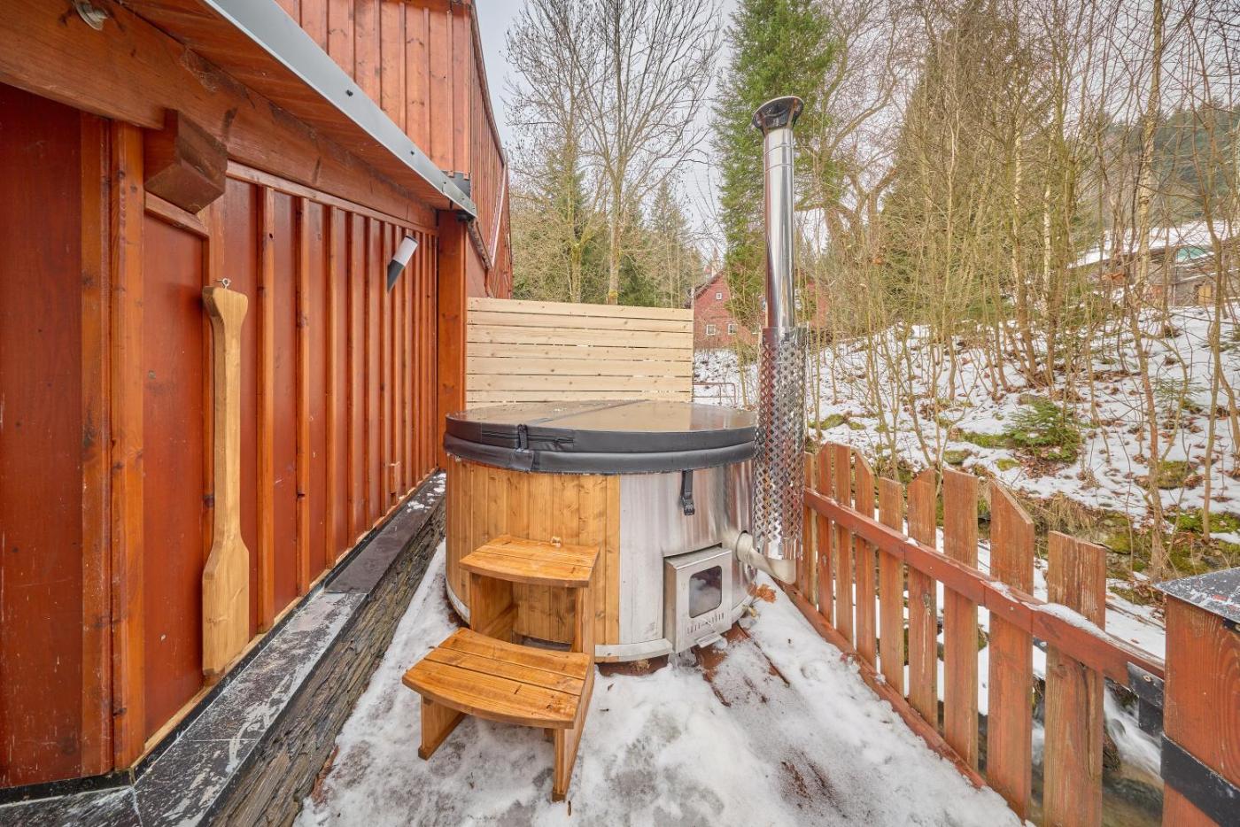 Offering a garden and river view, Chalupa Javořinka isin Pec pod Sněžkou, 34 km from Western City and 35 km from Bus Stop Strážné. This chalet provides free private parking and a shared kitchen. The accommodation offers a hot tub, free WiFi throughout the property and family rooms.
